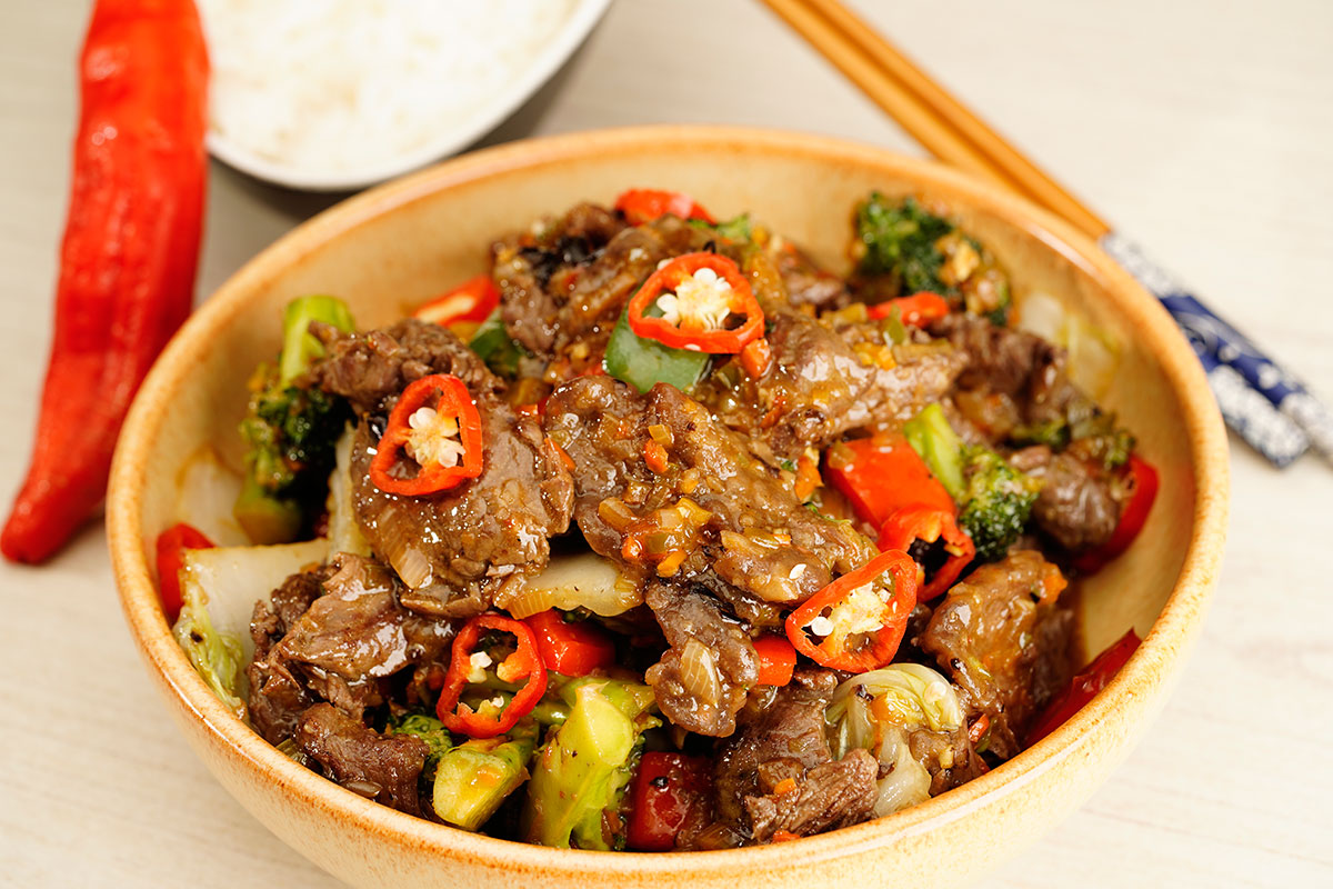 LOMO CON BRÓCOLI Y HONGO CHINO